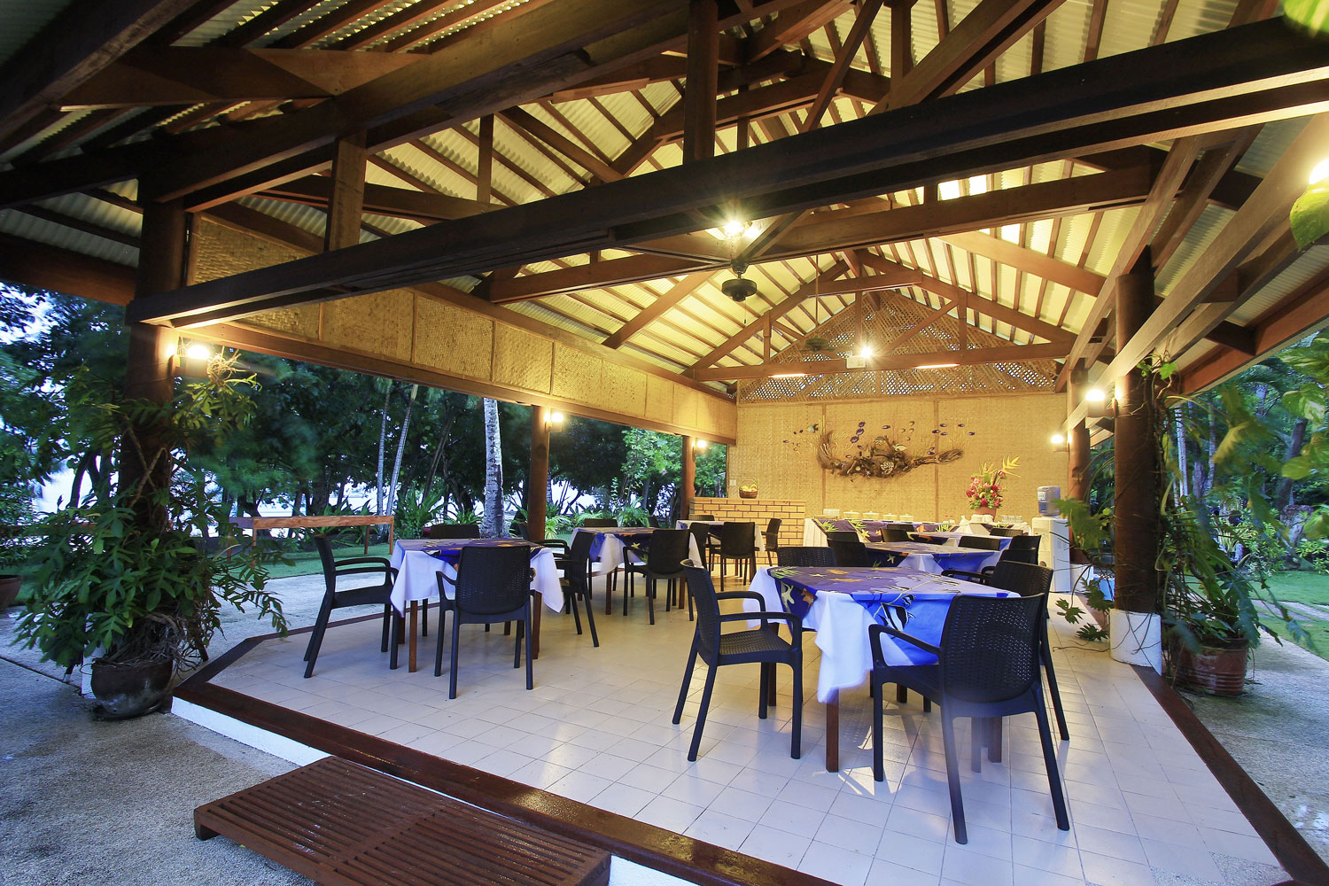 The Pavilion is an open-air, wooden structure with a lovely view of the beach. It is where island meals (and snacks) are served. This is where guests usually convene to simply chat while lounging on the sofas.